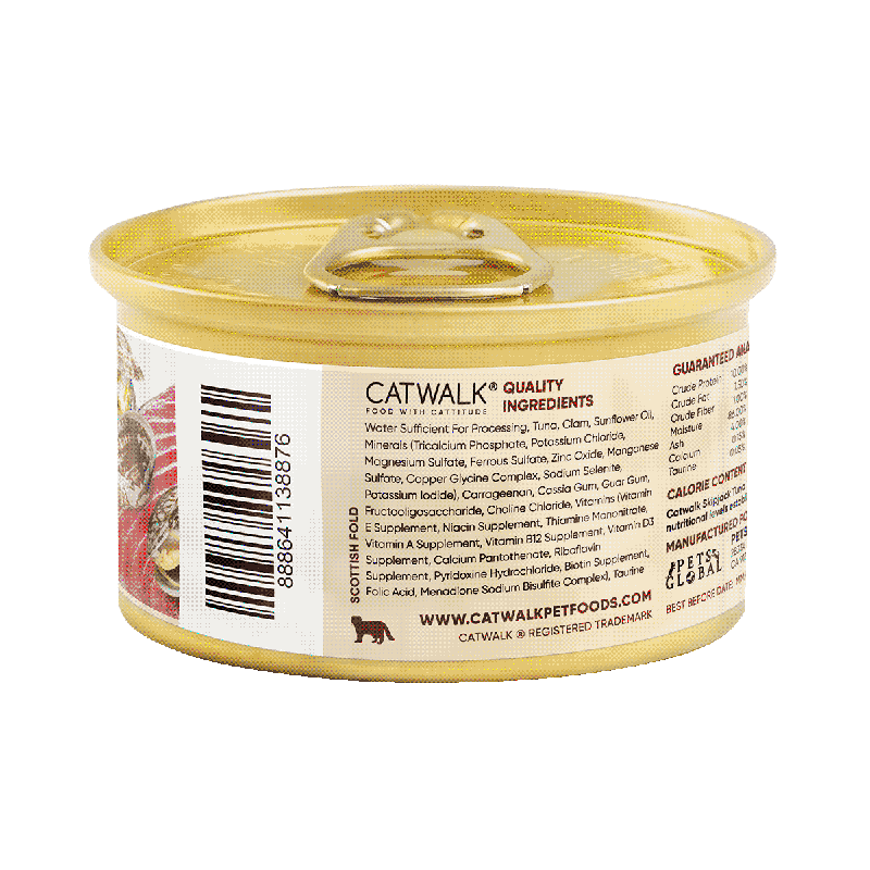 CATWALK 鰹吞拿魚 + 蜆肉主食罐每罐均加入維他命營養粉