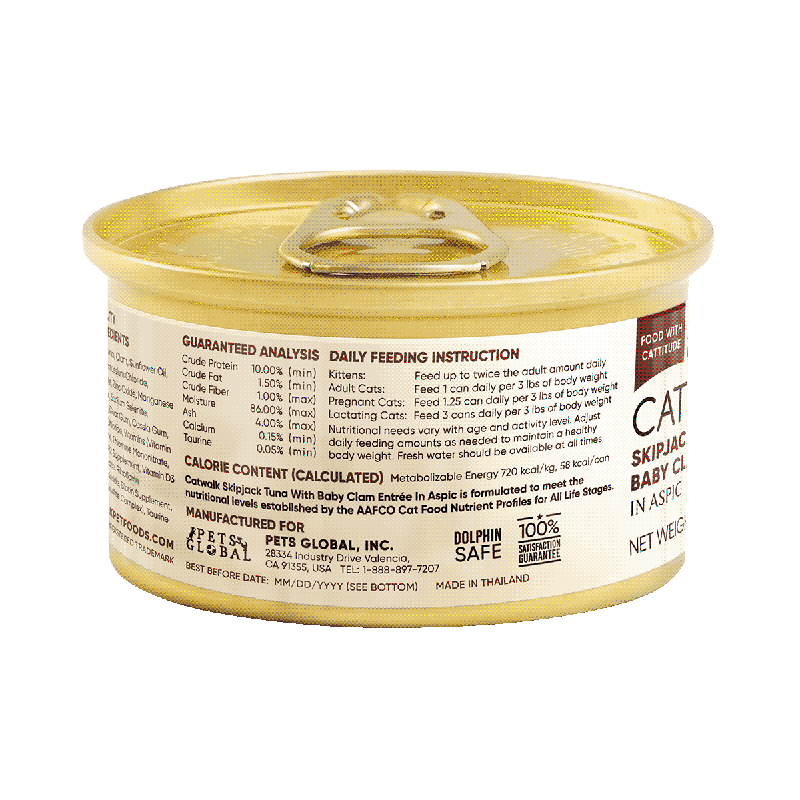 - 主食罐: CATWALK全線均由AAFCO美國飼料管理協會 認可為主食罐