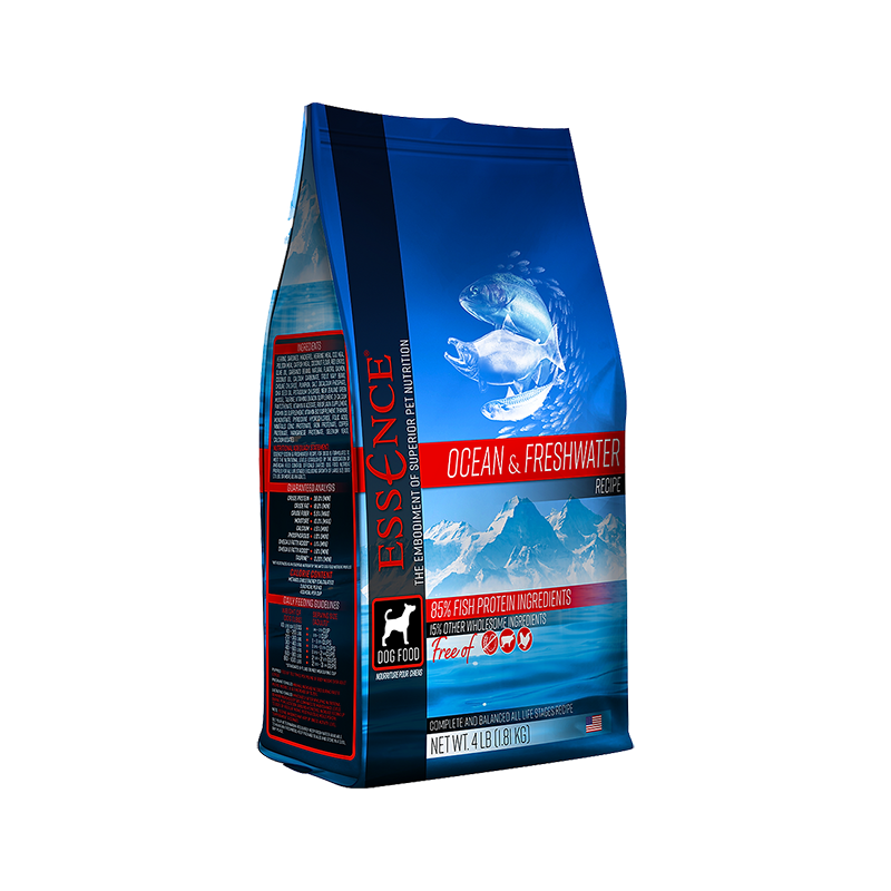 Essence®非凡 OCEAN & FRESHWATER 藍海精選為你的愛犬帶來最潔淨及最健康的蛋白質,並同時集合多種魚類的好處,包括新鮮海魚的豐富魚油,及來自白魚的優質蛋白質。我們最主要的成分包括三文魚、鯡魚、沙甸魚及鯖魚,同樣地不採用任何穀物。與此同時,我們加入健康的蔬菜例如南瓜,可額外增加健康營養和膳食纖維。這些一切都是為了確保你的愛犬維持最佳健康,同時能品嚐優越食材的真正味道。嚴選優質食材及有益健康成分,Essence®非凡 OCEAN & FRESHWATER 藍海精選真正帶給你非凡寵物營養的全新體驗。