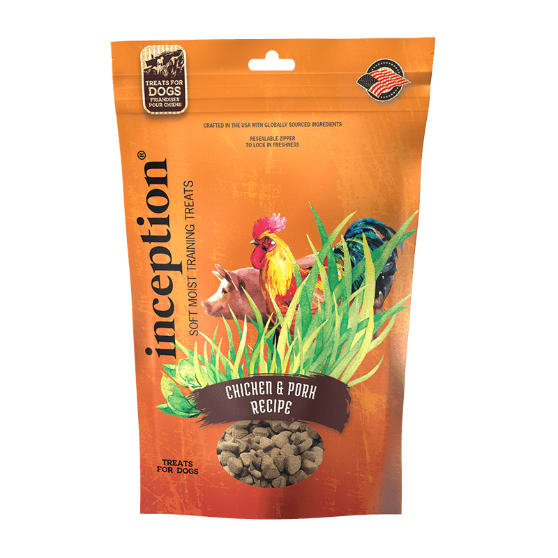 Inception®優純雞肉及豚肉低敏小食主要採用最優質的肉類蛋白所製成,其次的成分有高梁,小米和燕麥,健康之餘,味道可口,而且可以分成一口大小的體積,吃起來更方便,絕對可以成日犬隻訓練的健康獎勵