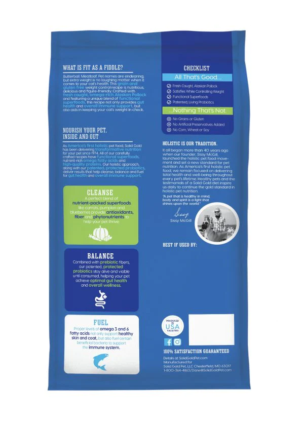 Solid Gold 素力高 Fit as a Fiddle™ 無穀物鱈魚低卡成貓控制體重貓糧