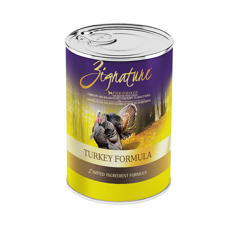 Zignature採用有營簡單的配方去製作狗狗寵物食品,因為在大部份情況下,簡單配方更有益健康。Zignature超越火雞配方狗罐頭是營養均衡的高質素寵物食品,對狗狗健康帶來很多的好處。Zignature超越狗糧的火雞配方精選美國中西部農場養殖的火雞作為原料,火雞的飽和脂肪含量極少。不僅內含豐富的硒、核黃素和磷,加上非常可口的狗糧配方,可以增加狗隻的食慾。