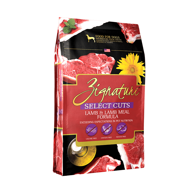 Zignature Select Cuts卓越精選羊肉配方首兩項主要成份採用優質羊肉和乾燥羊肉,並加入對犬隻健康有益的天然食材,例如燕麥、小米和藜麥,確保你的愛犬獲得最滿足的營養。羊肉提供大量豐富的蛋白質,同時也是鐵、鋅和維他命B12的重要來源。羊肉能促進及維持犬隻肌肉的生長。藜麥是歷史悠久的健康食材,是一種不含麩質的全穀物,並富含大量優質維他命和礦物質。